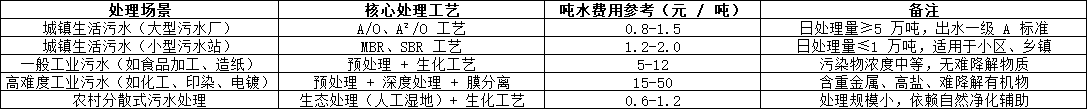 結(jié)合當(dāng)前政策要求、技術(shù)水平和區(qū)域差異,以下為不同場景下的污水處理費(fèi)用參考范圍(含核心支出,不含特殊補(bǔ)貼),供各主體核算時對標(biāo):