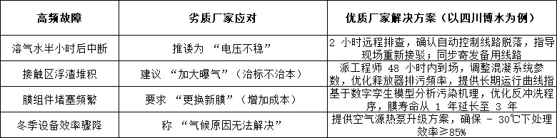 •核查核心部件品牌:如膜組件需為陶氏、GE 等一線品牌,低效國(guó)產(chǎn)膜易導(dǎo)致 1 年更換 2 次,運(yùn)維成本翻倍。